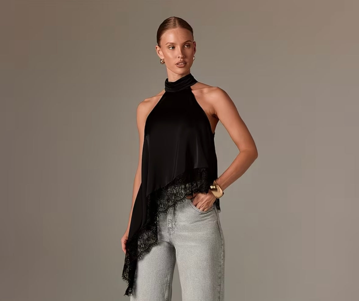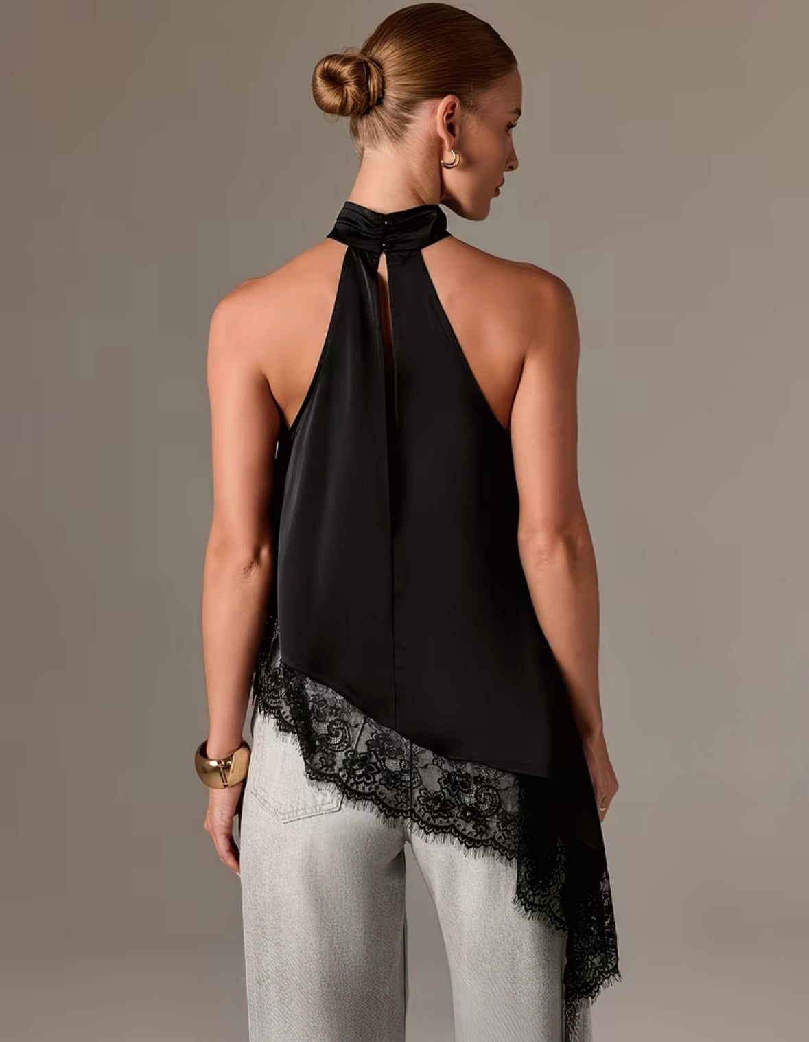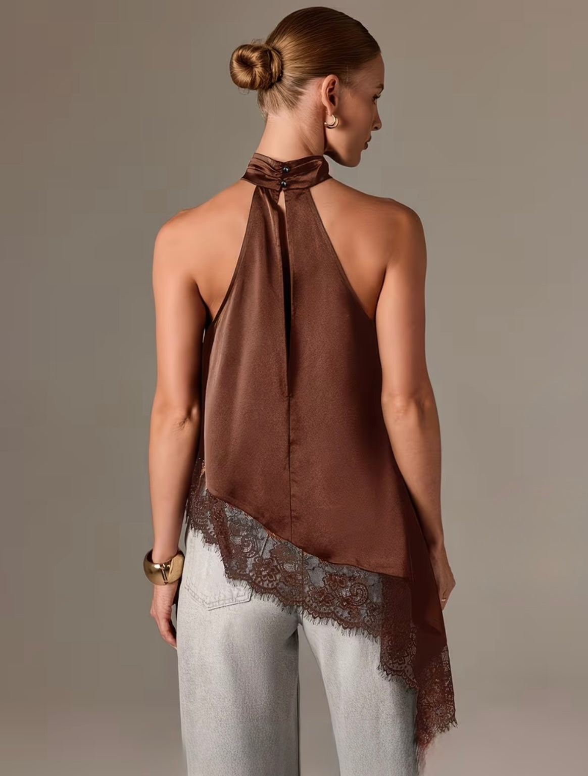 Niche Design Sleeveless Top for Women with a Halter Neck And Off-Shoulder Style.