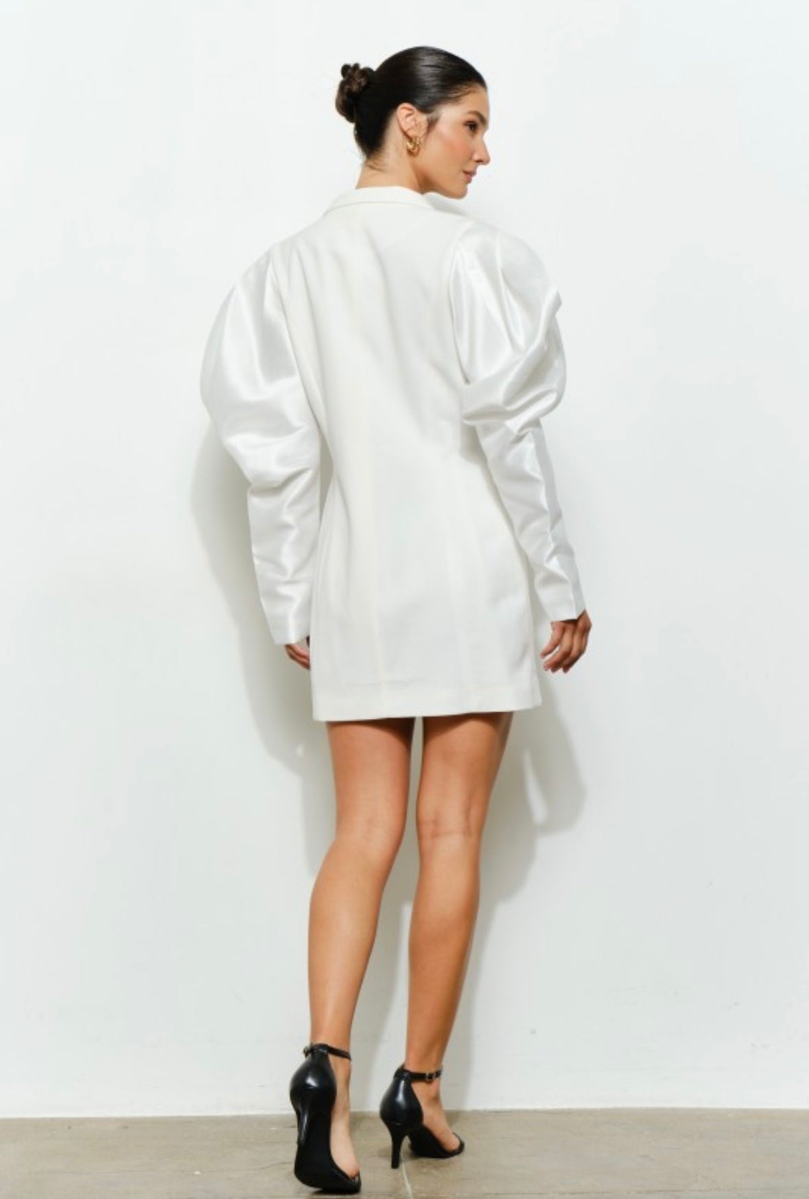 Satin Puff Sleeve Blazer Jewel Button Mini Dress